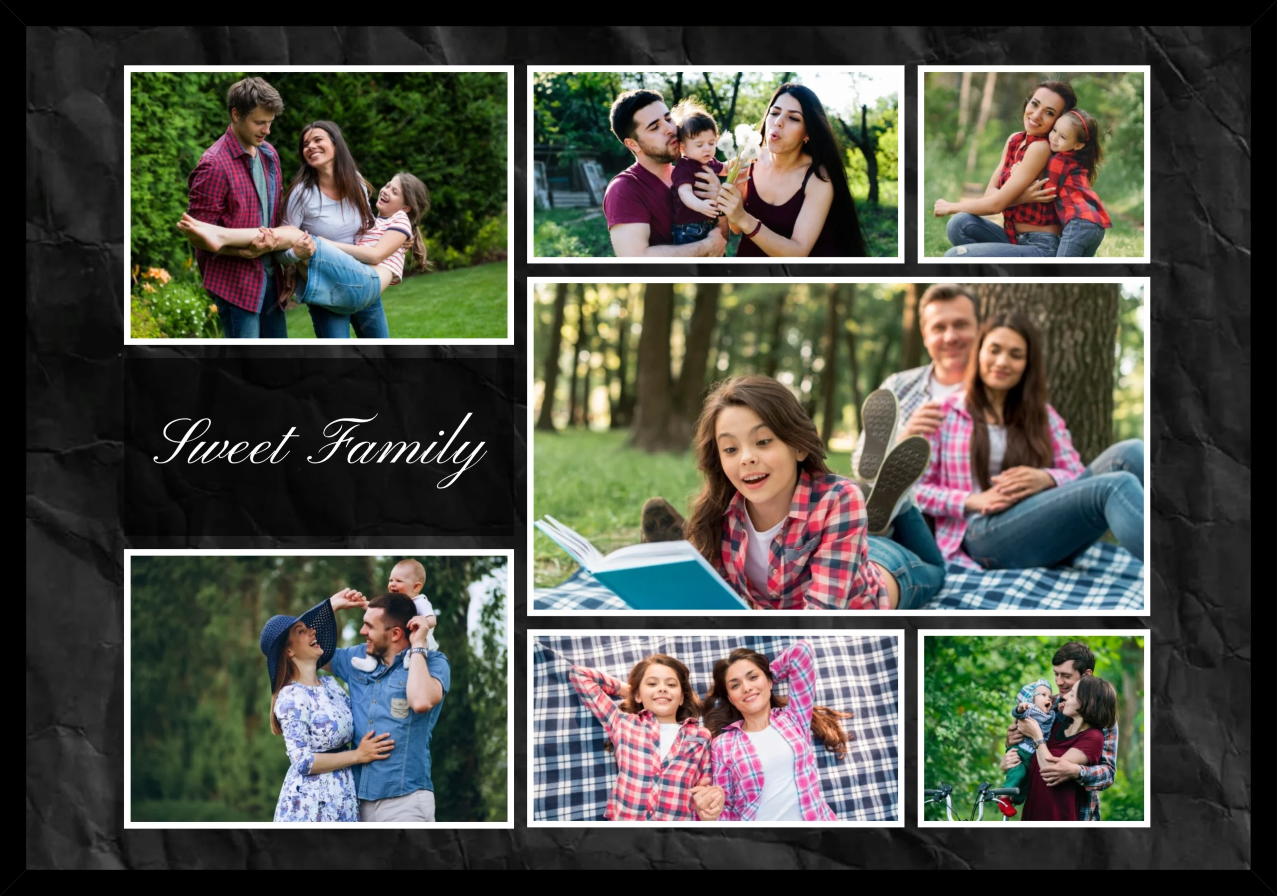 - 7-Photo Collage Layout: Display up to 7 of your favorite family memories in a perfectly balanced design.